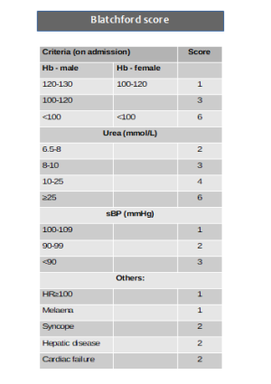 - Blatchford score at first assessment, and